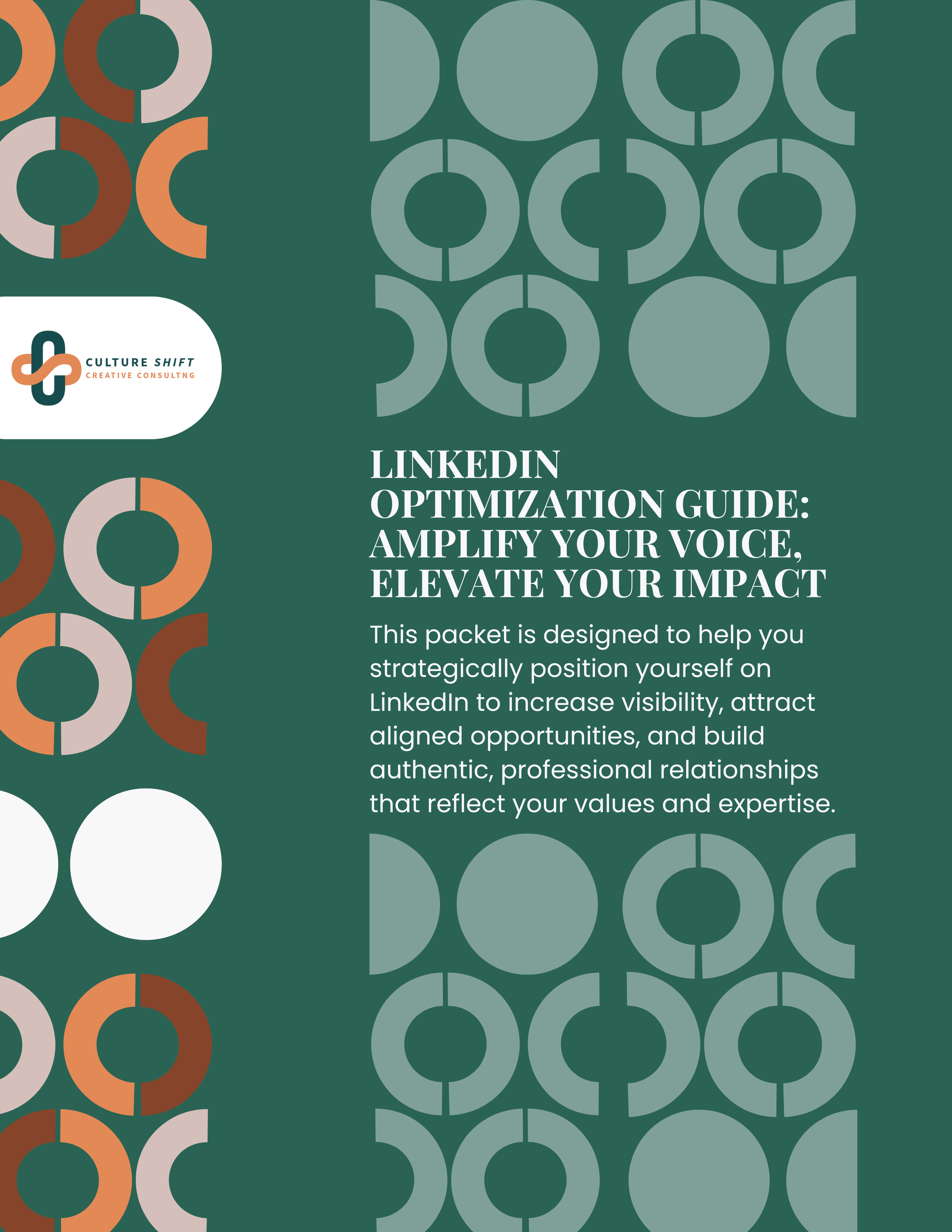 This guide is designed to help you strategically position yourself on LinkedIn to increase visibility, attract aligned opportunities, and build authentic, professional relationships that reflect your values and expertise.